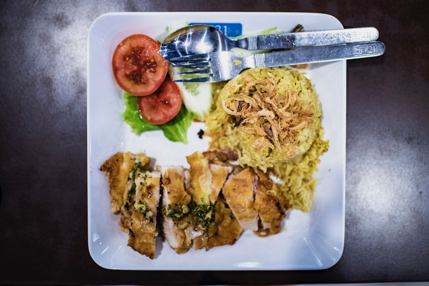 Interested in discovering Thai Muslim food? Whether within Bangkok food courts (more on those in a second) or in the South (I once walked 2 km in Koh Samui to find some!), this Thai-style chicken biryani has a delicious, delicate flavor, particularly if yours (and the fried onions that top it) is fresh-made! Coming back to the question of food courts, my favorite place in Bangkok to enjoy Khaaw Mook Gai is at Terminal 21 Mall, near Asok station.