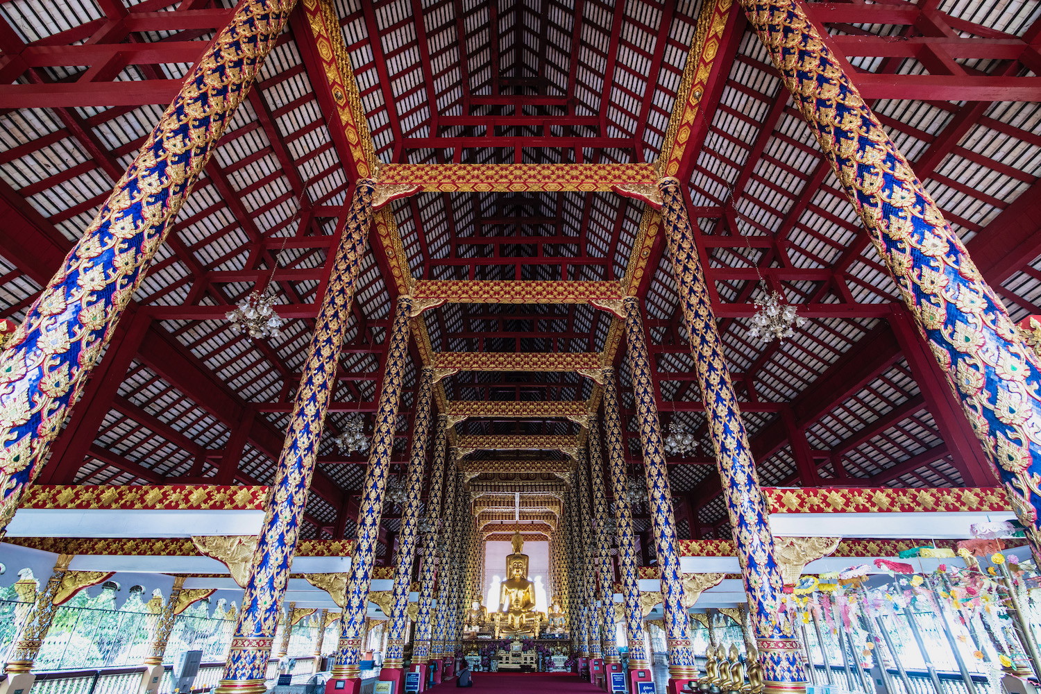 Indeed, the rest of the day proved more of a mixed bag. Clouds had crept back in by the time the driver headed back down the mountain and through Rajapruek Royal Park up to Wat Doi Kham, whose standing Buddha is much less impressive when you stand beneath it than it seemed from the drone shots that advertise it online. Likewise, by the time I got back to the city to see Wat Phra Singh light up, the unrelenting cloud cover had long-since dashed any hopes of a sunset, or anything close to it.