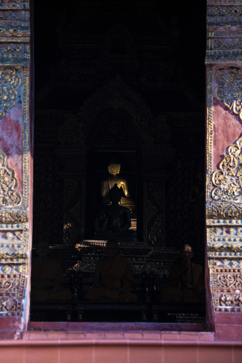 But as I neared Wat Phra Singh—well, as much as you can “near” a place that’s only about five minutes from where you’ve just slept—delight started creeping in. The clouds, it seemed, broke heavily near the eastern horizon; the rising sun was strongly shining through the break. By the time I arrived at the temple, whose gold was positively gleaming when I got there, the light warmed my face in a way I can only describe as beatific.