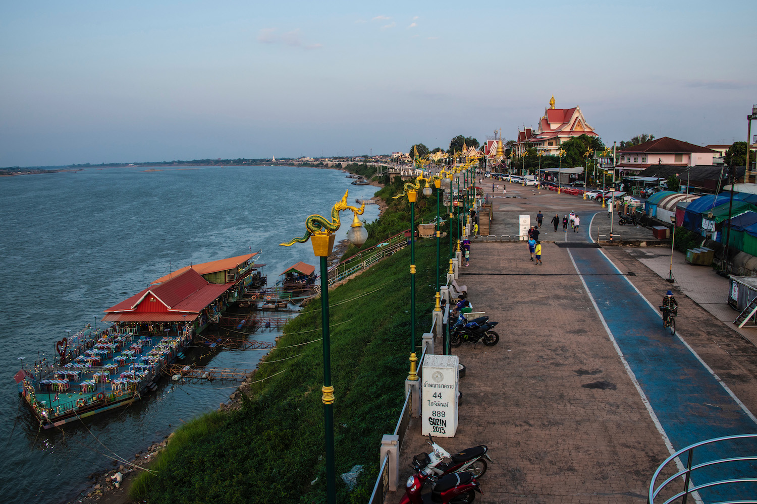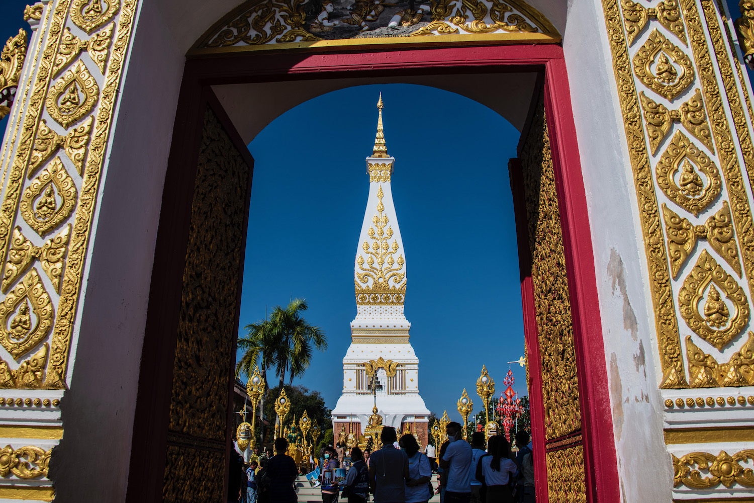 By the time we found ourselves at the base of Wat That Phanom, just up the river in scenic Nakhon Phanom, the day’s disagreements seemed years in the past. Prus was fixated on the red accents on the raised portions of the gold carvings on the stupa; I was entranced by the chant of the worshippers walking clockwise around it.