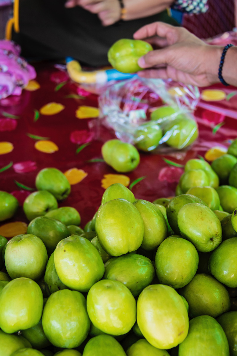 No such tragedy came to pass, at least not by the time we entered the snaking line for the shuttle back to the parking lot. There, we chased an underwhelming somtam lunch with raw jujubes, which were like small and tart but juicy apples; the tension continued to wane.