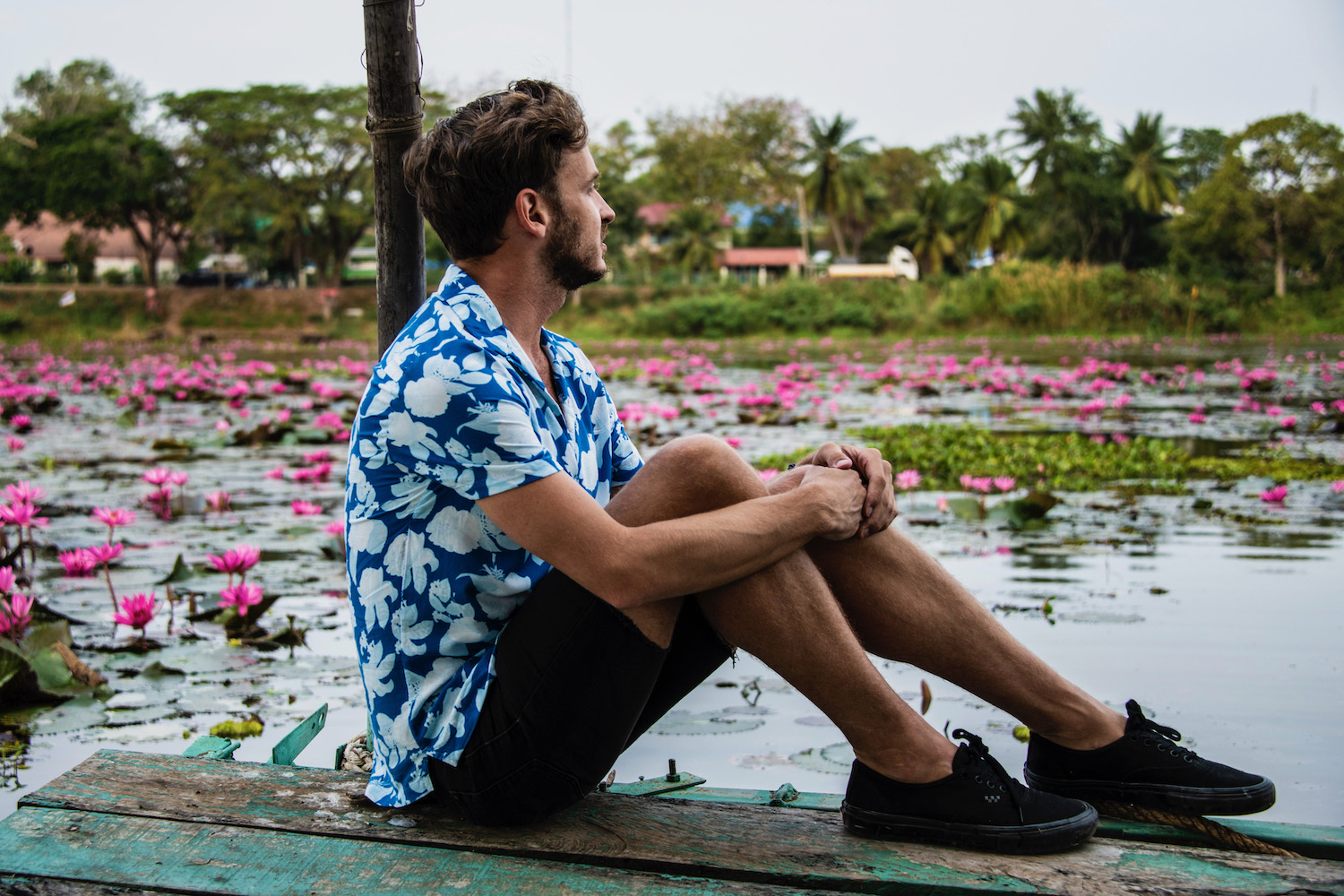 It spite of this peace, or maybe because of it, countless bua daeng teased us as we drove over the lake’s southern extremity on our way to Roi Et. After having a brief communion with the flowers—and a heart-stopping one: we walked out onto a rusty, barely-still-floating fishing shed in order to see them from water level—we continued on our way, through pastoral backcountry that was bucolic but not breathtaking.