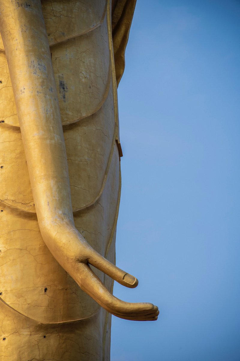 “We’ve had a lot of good karma,” I assuaged Prus, who seemed keen to keep the tension going as we pulled into Wat Roi Phra Phuttabat Phu Manoram parking lot. One of the largest Buddha images I’ve ever seen in Thailand loomed far above us.