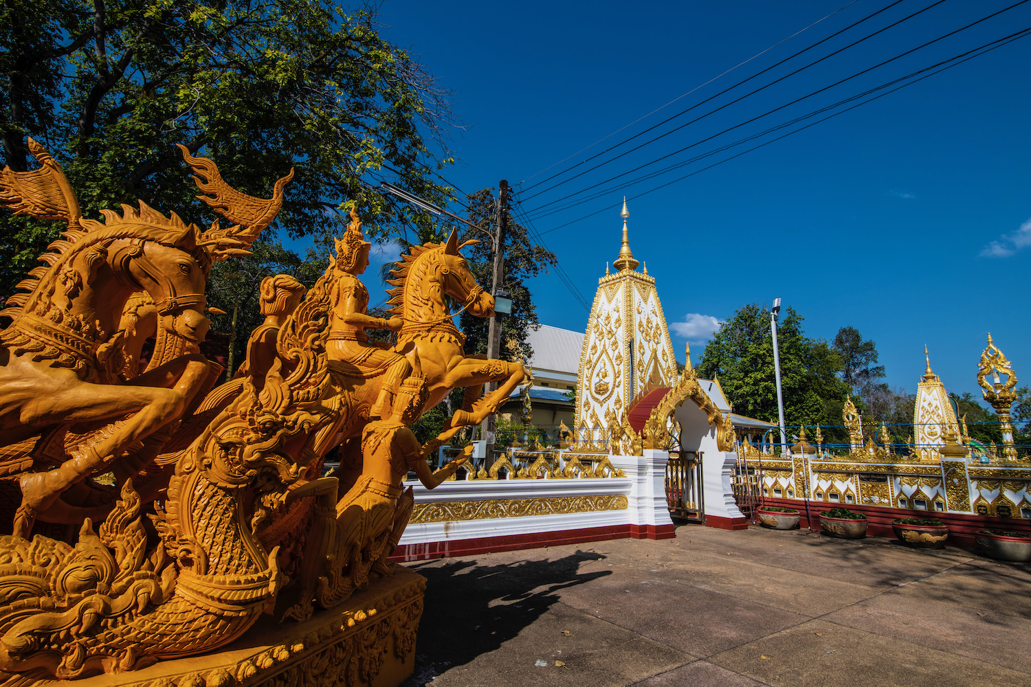When we arrived at Phra Maha Chedi Chai Mongkol, a massive pagoda complex at the eastern extremity of Roi Et province, I wasn’t sure what to think. The magnificence of its ivory and gold seemed all the more resplendent because of how ordinary the landscape it all rose above was. The ornate interior of the main Chedi, which like so many in Thailand is said to enshrine an actual relic from the Lord Buddha (Gautama, I assume), heightened this.