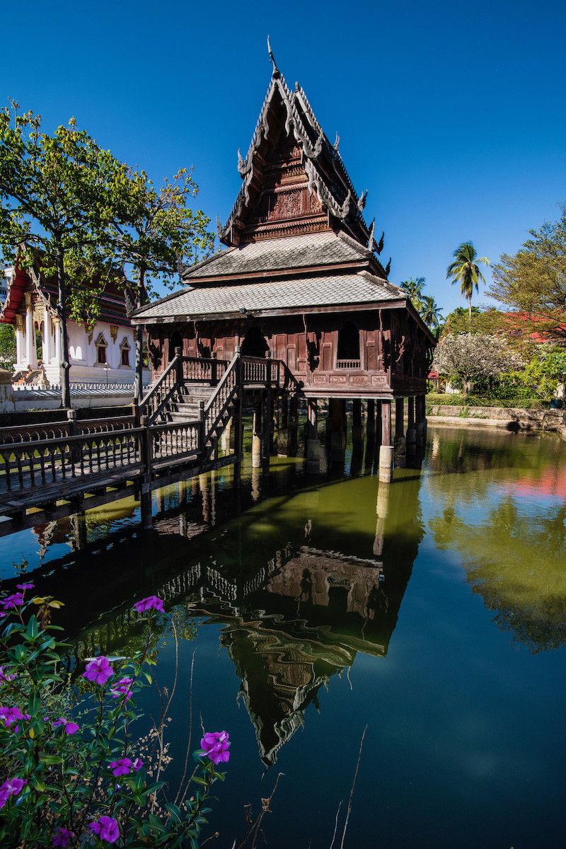 Or maybe they did. “The Naga exist in another dimension,” he explained without really explaining, as we crossed the serpentine pedestrian bridge to the main shrine of Kham Chanot, which sits on a heavily-forested mangrove island. The stench of the mud that prevents it from sinking into the surrounding swamp was almost as unbearable as the heat was unrelenting.